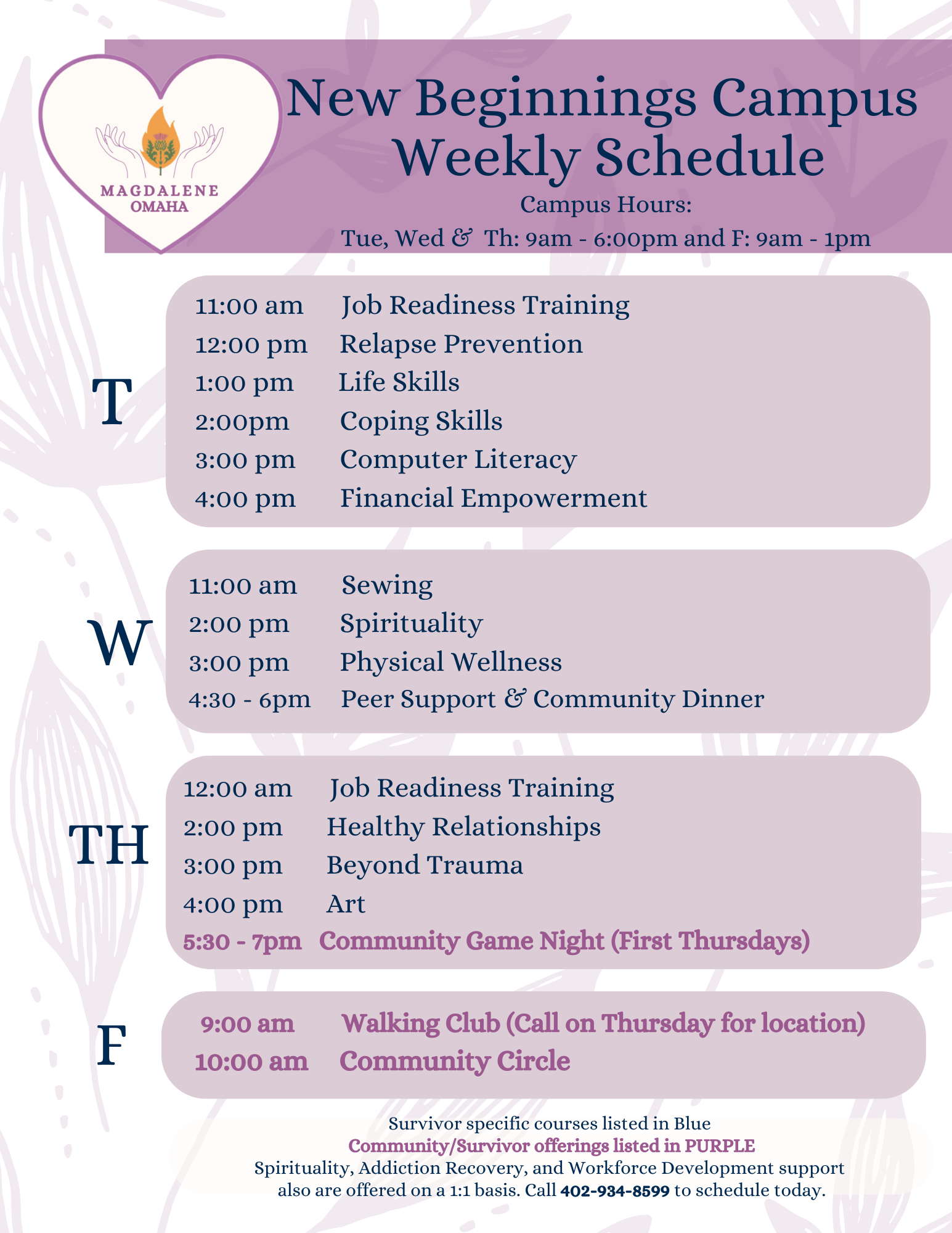 Our downloadable weekly program schedule is below.